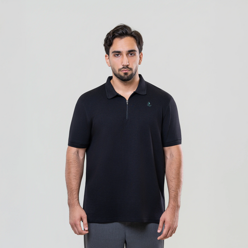 Men’s Black Interlock Fabric Polo – Zipper Front