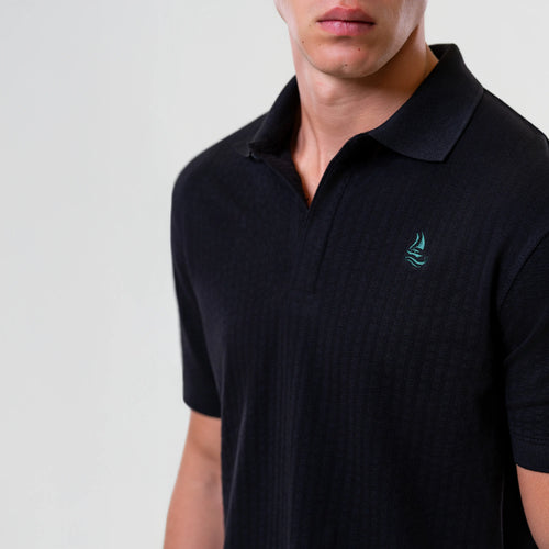 Men’s Black Ottoman Fabric Polo - Hidden Placket