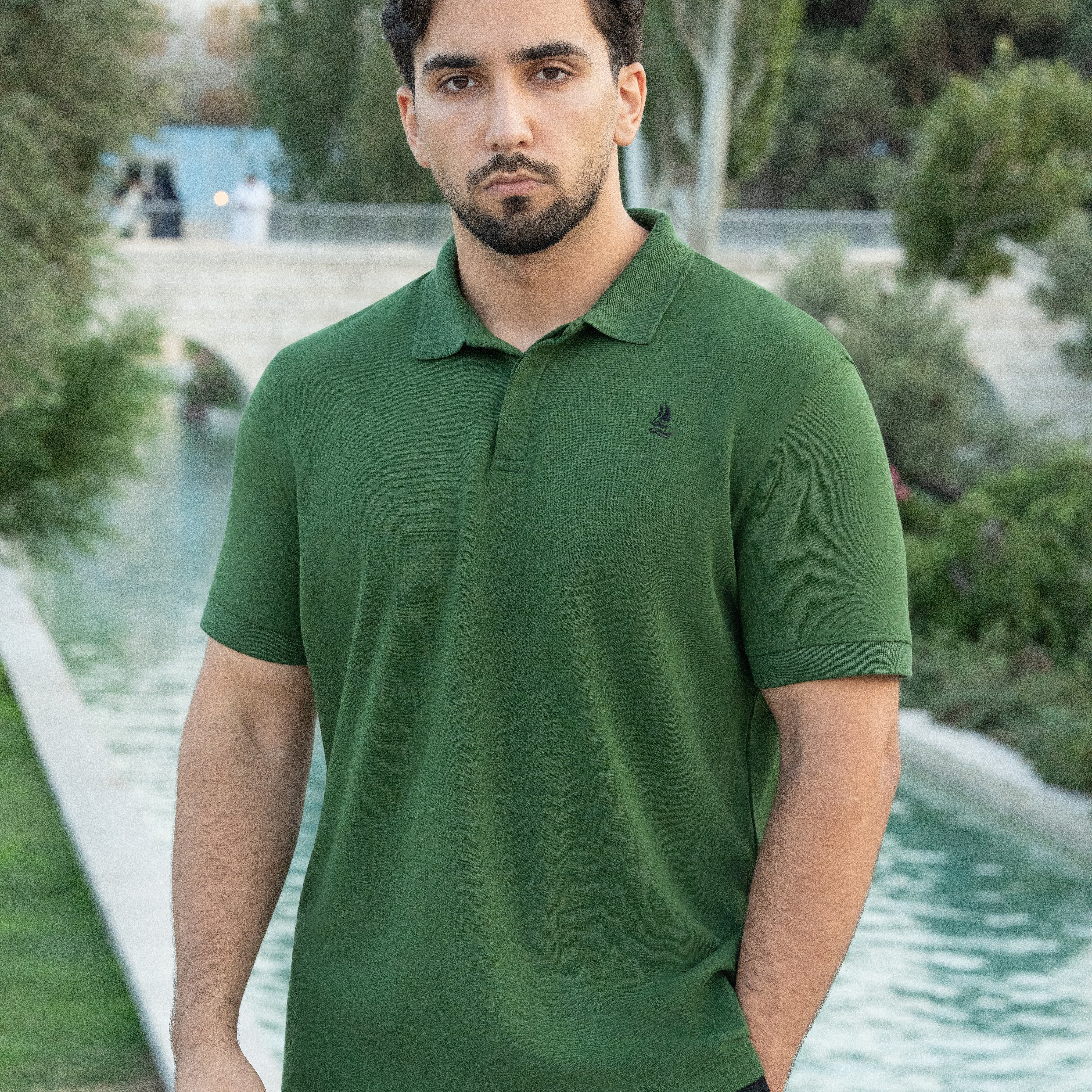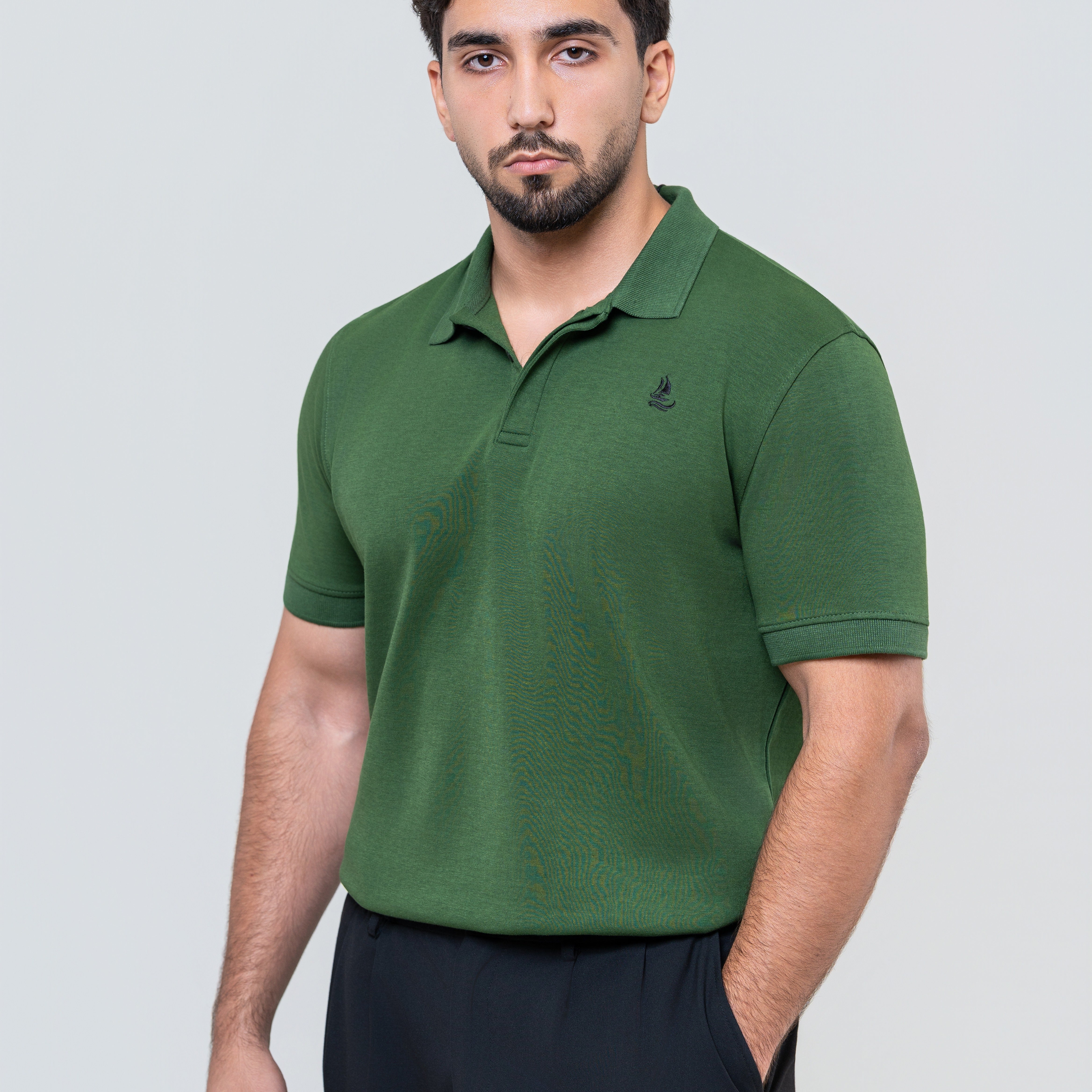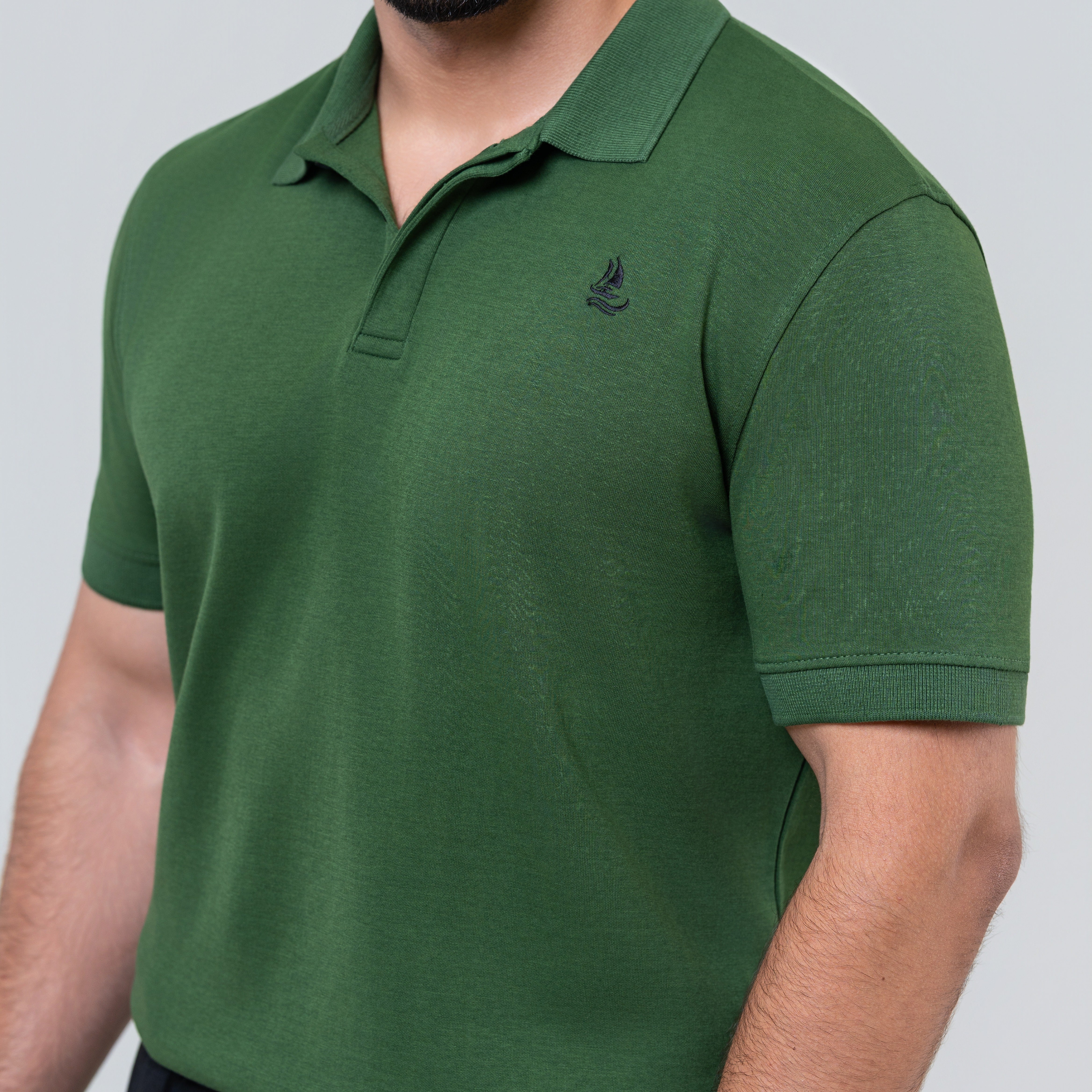 The hidden button placket creates a smooth, minimalist look that elevates your casual and semi-formal outfits. Its deep green shade adds a bold yet timeless appeal, making it the perfect go-to for men who value understated class and comfort.