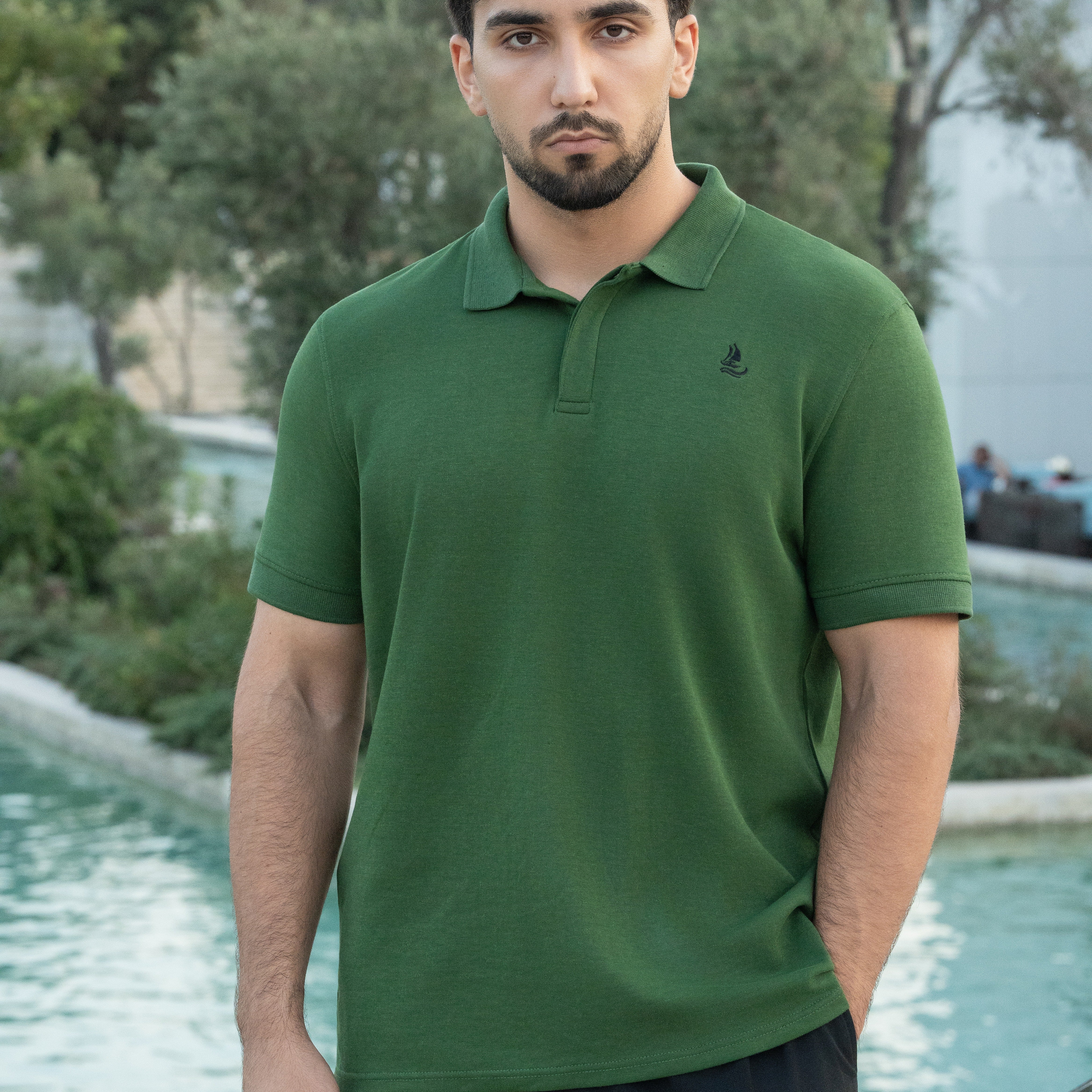 Kevin Imes Men’s Green Hidden Button Polo Shirt – Premium Stretch Cotton Elegance